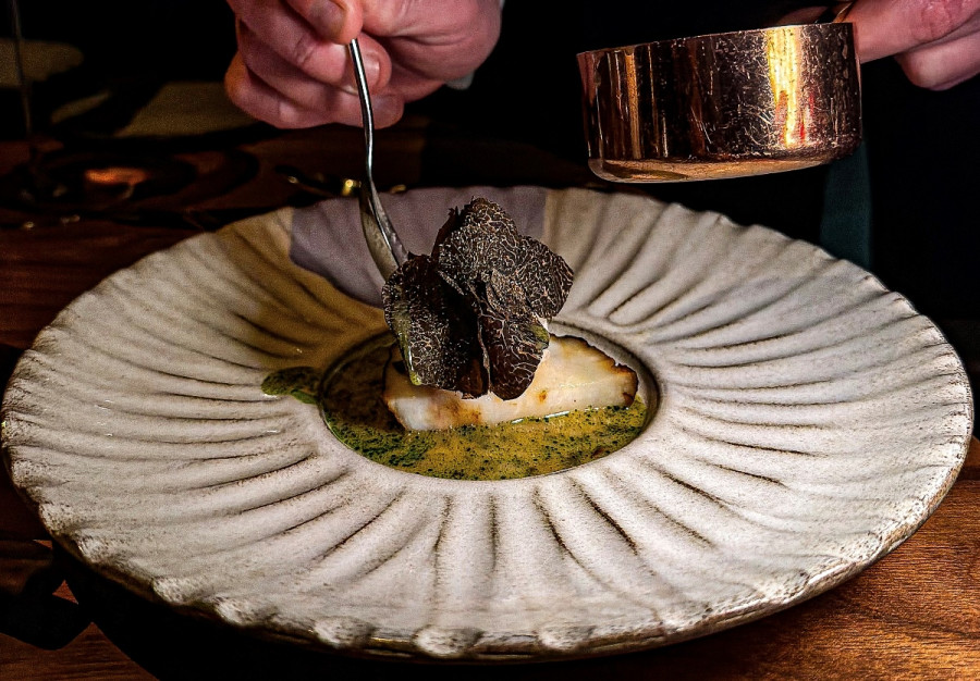 Presented in the urchin shell, set over ice, the urchin itself is dense and almost buttery, while the prawn is sweet, translucent and full of intensity. The dish seems to carry within it the essence of the northern sea. What impresses most, however, is the precision of the technique. Temperature, texture, salinity and the natural sweetness of the shellfish are all perfectly calibrated. Renaa takes two ingredients with strong, distinct identities and brings them into a rare and seamless harmony.