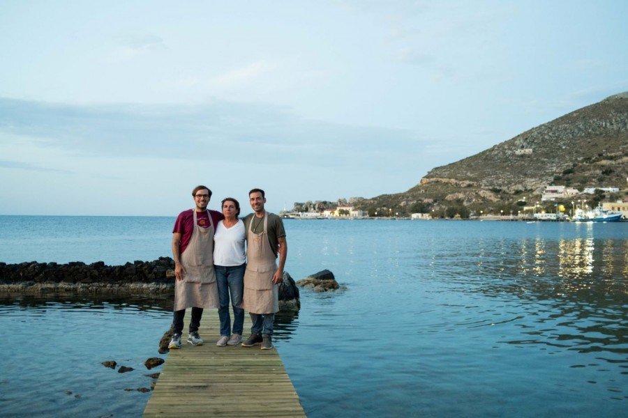 The secret is always the people. In this case, the two brothers, George (left in the photo, their mother in the middle) and Marios Koutsounaris (right). Twelve years ago, they took over their parents` ouzo restaurant and turned it into a restaurant that—without any exaggeration—is talked about worldwide as little in Greece... and it is not in Athens, nor Mykonos or Santorini, but in Leros!