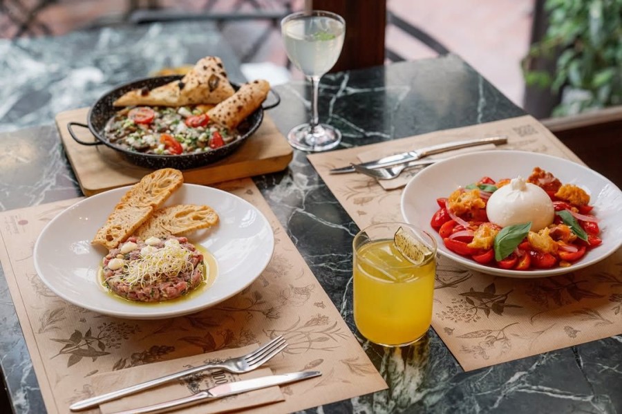 To talk about the food, the new menu, which accompanies the recent minor refurbishment of the space, is crafted by Pavlos Kyriakis and features a selection of comforting Italian favourites. Expect delicate pizzas topped with burrata, nduja, or truffle, alongside fresh pasta dishes such as bucatini carbonara and gnocchi with mushrooms and hazelnuts. For antipasti, vitello tonnato and beef tartare steal the show, while refreshing salads and desserts — like tiramisù or calzone with Nutella — complete the experience.